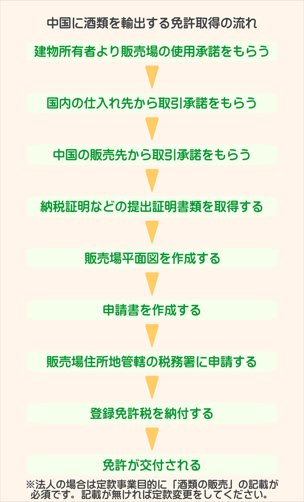 - 中国にお酒を輸出するには輸出酒類卸売業免許が必要 。