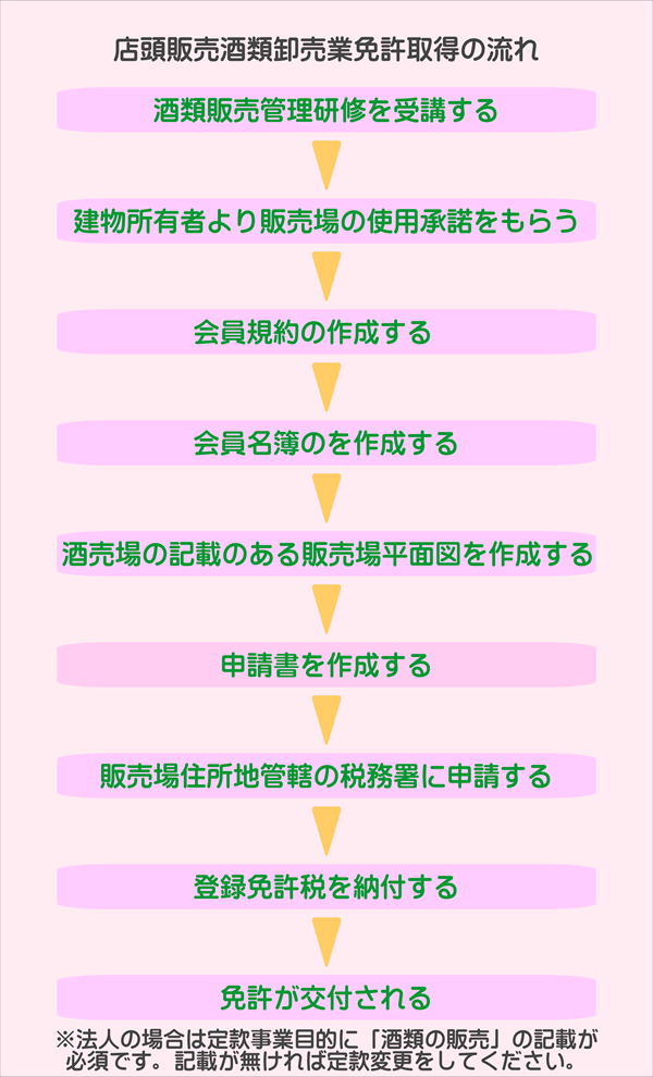 販売場については面積に制限はありませんが、店頭販売酒類卸売業を営むだけの設備をが十分に緯備えている必要があります。