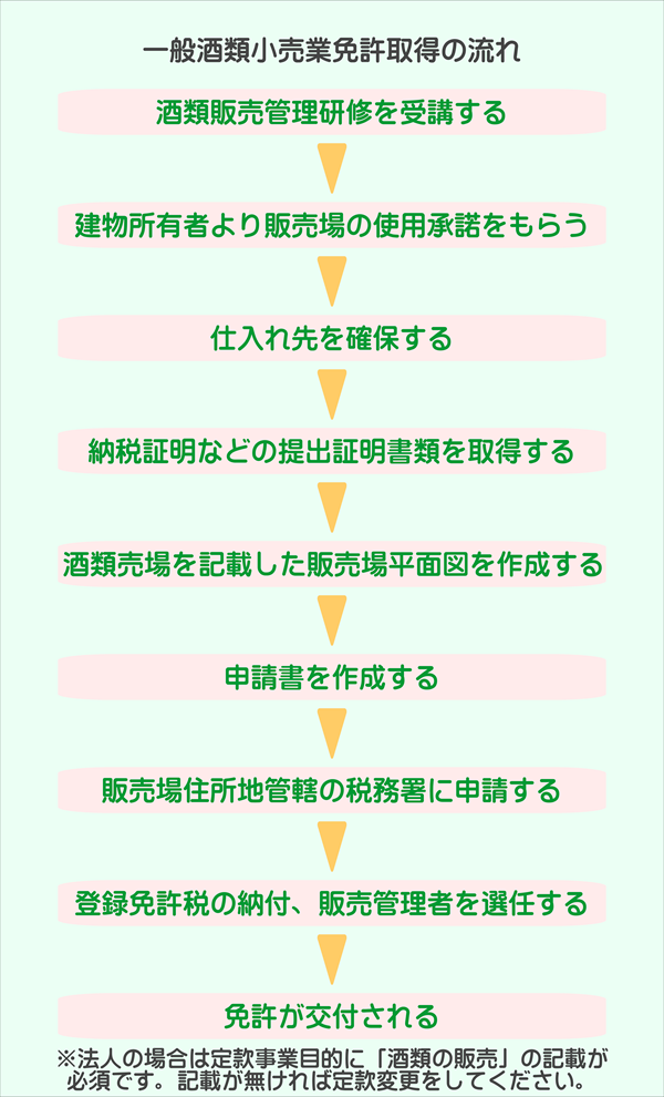 - 扱う品目、販売先、販売方法により異なる酒類販売業免許がある。