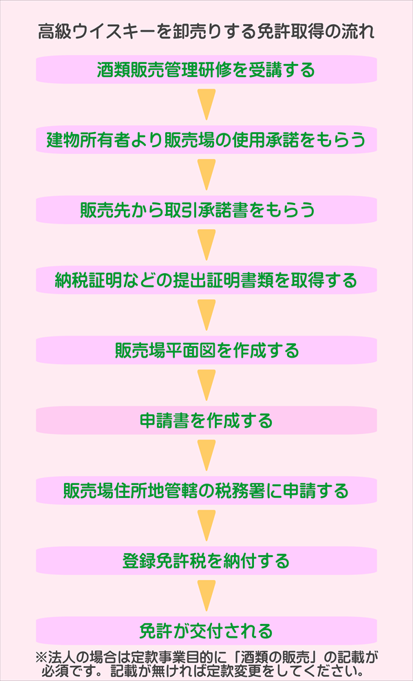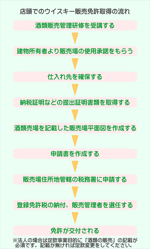 ウイスキーを販売するには酒類販売業免許が必要です。