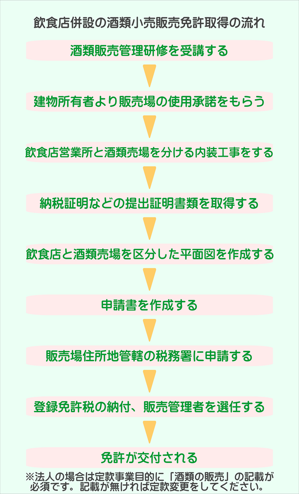 基本的に飲食店営業許可のある店には酒類販売業免許は付与されません。そこで、物理的に店舗が一体でないことが必要なのです。免許を付与してもらうには外見上は一体であっても内装や間仕切り、出入口など物理的には別々の店舗であることが求められるのです。
